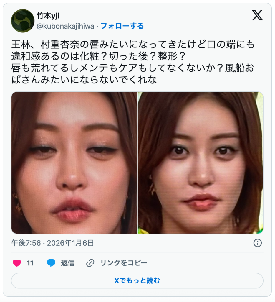 王林さんは青森訛りの素朴なイメージから一転、最近の華やかなメイクやハイトーンヘアへの影響もあり、垢抜けした?すっかり東京に染まってしまった、との声も。実際の放送では、確かに口元が動かしづらそうな印象を受ける場面もあり、唇の違和感に注目が集まることに。